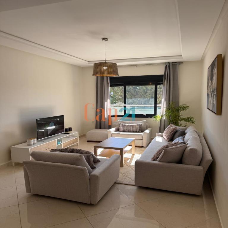 Très bel appartement moderne à louer à Merkala Tanger. Caractéristiques : - 1 salon lumineux et confortable - 1 belle salle de bain et 1 toilette invités - Une chambre parentale sans vis-à-vis avec grand placard et une belle terrasse - 1 chambres lumineuse - Une cuisine équipée - Un appartement moderne - Situé dans un très bel immeuble récent - Climatisation centrale il y a aussi une place de garageDétails